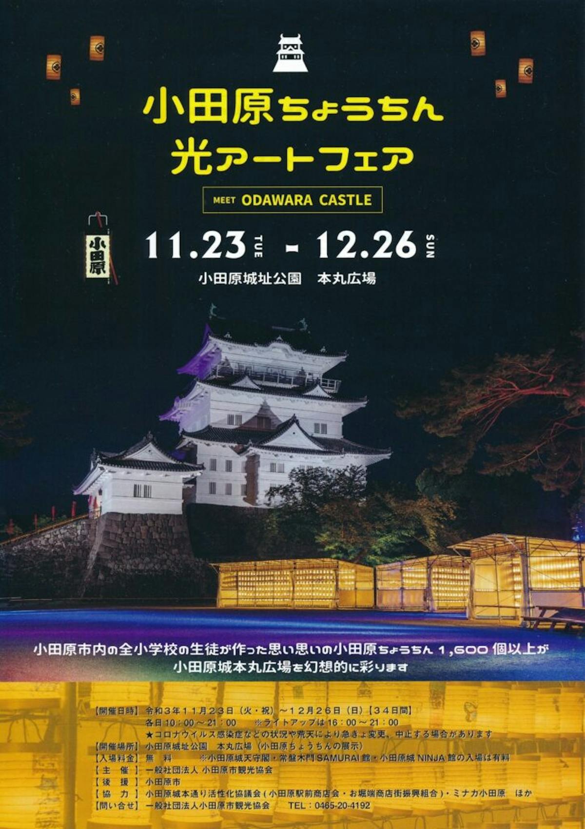 小田原城址公園で、歴史に名を残した小田原ちょうちんをテーマにした光の祭典「小田原ちょうちん&光アートフェア ~Meet Odawara Castle」が、2021年12月26日まで開催されています!!