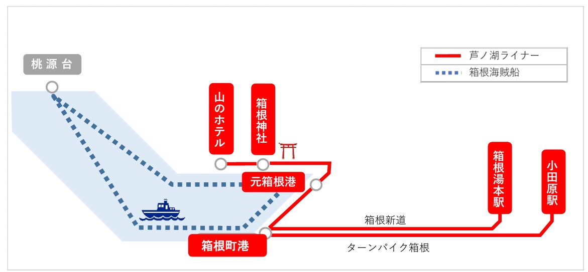 「小田原駅・箱根湯本駅~元箱根港間を座席定員制で運行するバス『芦ノ湖ライナー』」は、小田原駅・箱根湯本駅から、箱根神社にほど近く箱根海賊船のターミナルでもある元箱根港間を ゆったりとお座りになって移動することができる観光バスです。